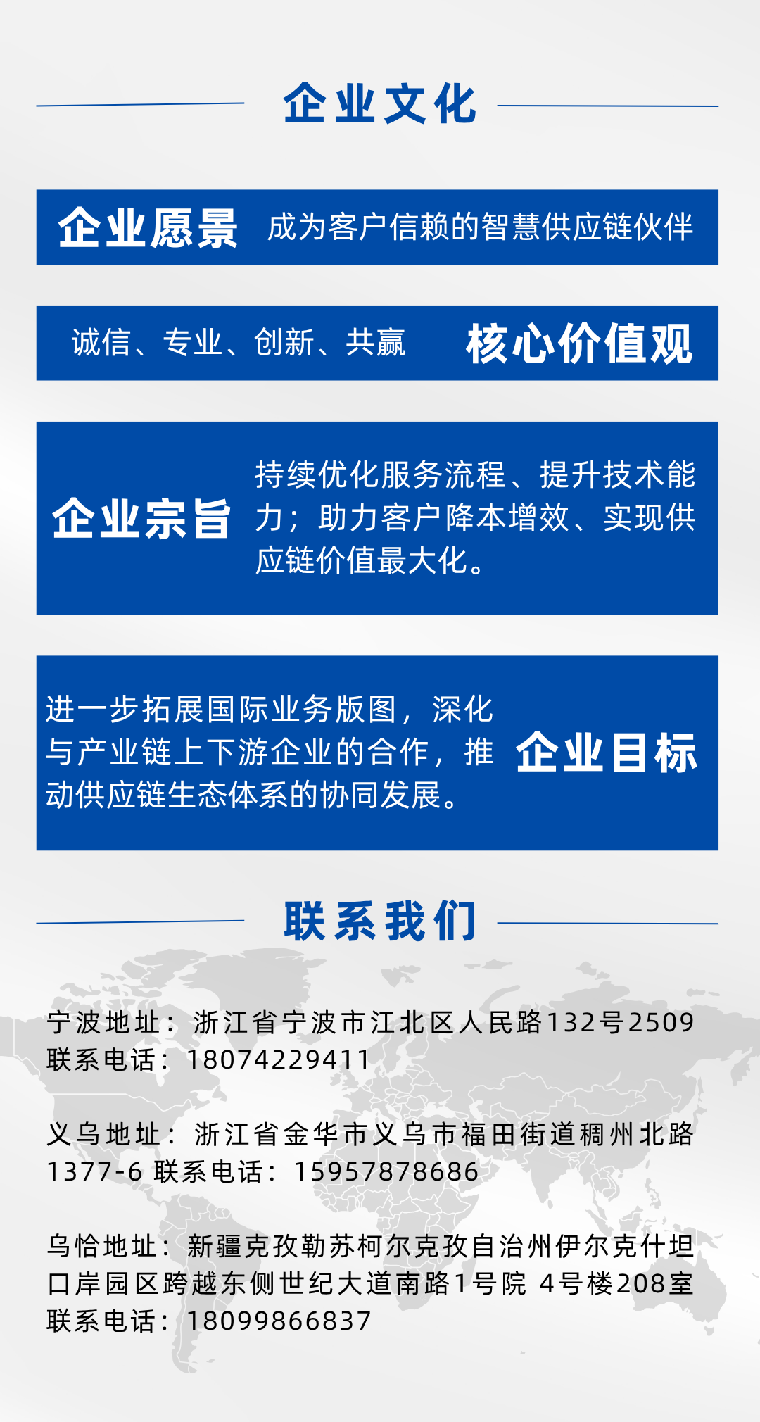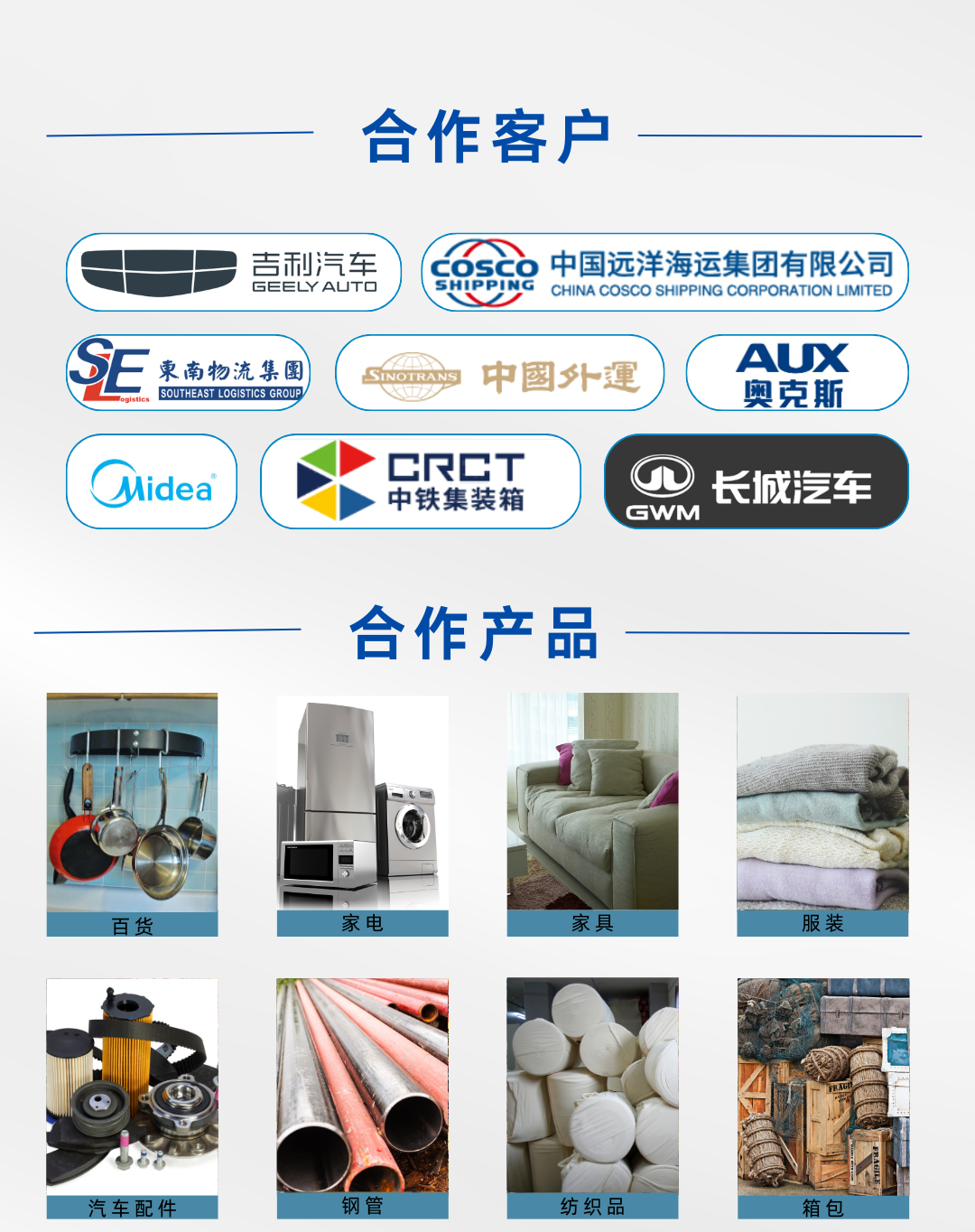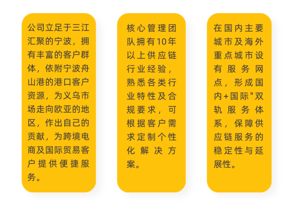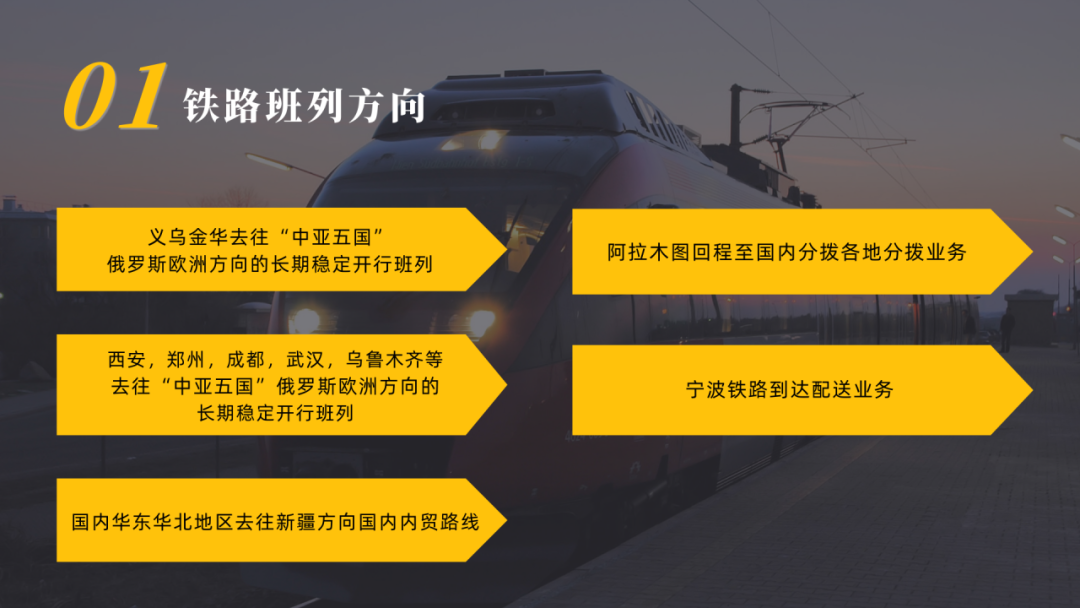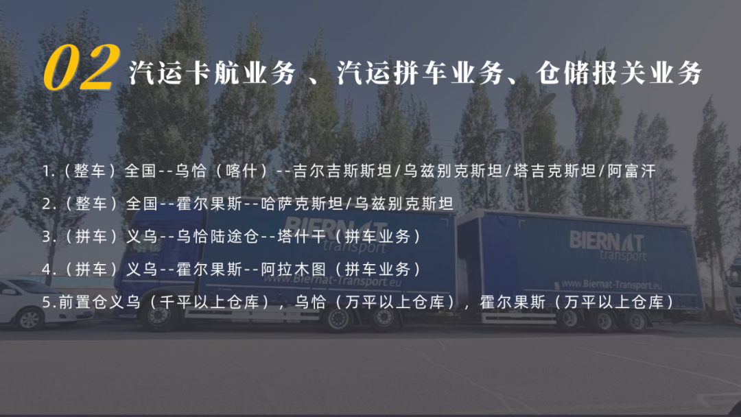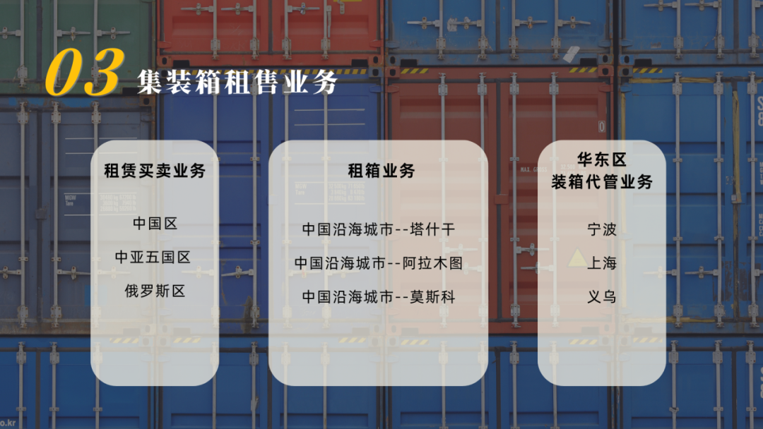 我们是一家专注于铁路集装箱班列运输、汽运整车运输、汽运拼车、仓储配送、供应链管理、国内前置仓管理、海外仓管理、中亚地区代理清关等业务的综合型现代化供应链管理公司。